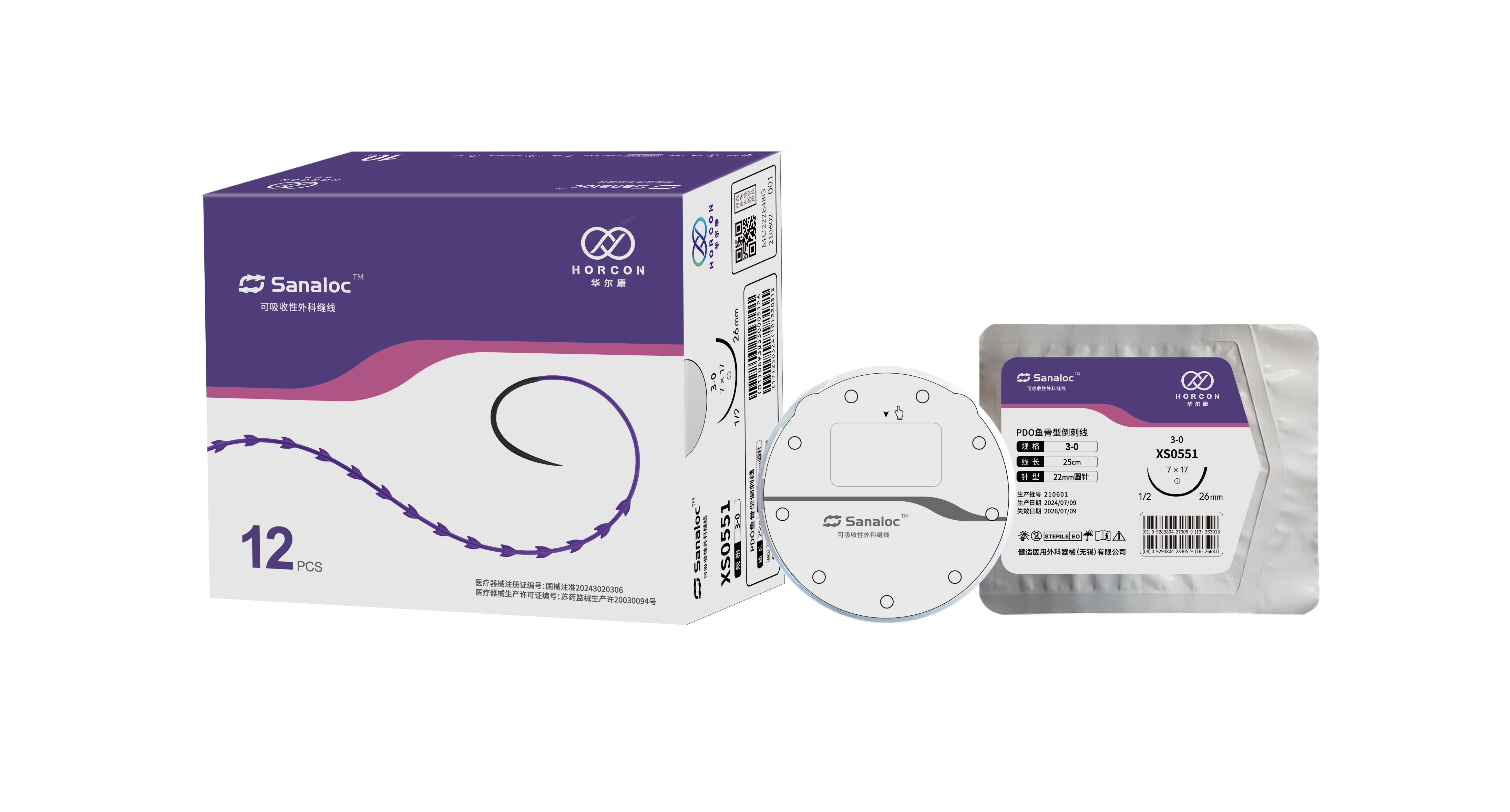 Sanaloc™鱼骨型倒刺线采用PDO材质和独特的压印成刺技术,具有更强的组织抓持力,有效避免切口因张力过高而裂开。 广泛适用于包括高张力切口在内的各类软组织缝合(如筋膜、脏器、皮下等)。 苏广审准许字[2024]第004510号